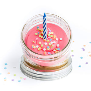 Our Birthday Cake Jarcake is the complete Ready-to-Eat celebration, transforming a classic confetti birthday cake into a convenient, no-mess jar. This festive treat features a moist birthday confetti cake (with colourful sprinkles baked right in!), topped with pink or blue frosting, extra confetti, and a real candle so you can make a wish anywhere.